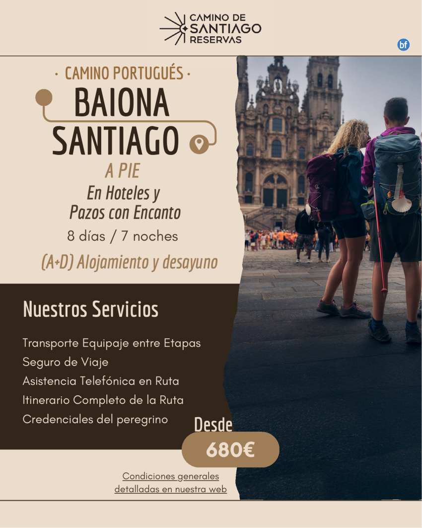 Baiona - Santiago de Compostela a Pie. Camino Portugués. 7 Noches/8 Días. Hoteles y Pazos con encanto . 680€